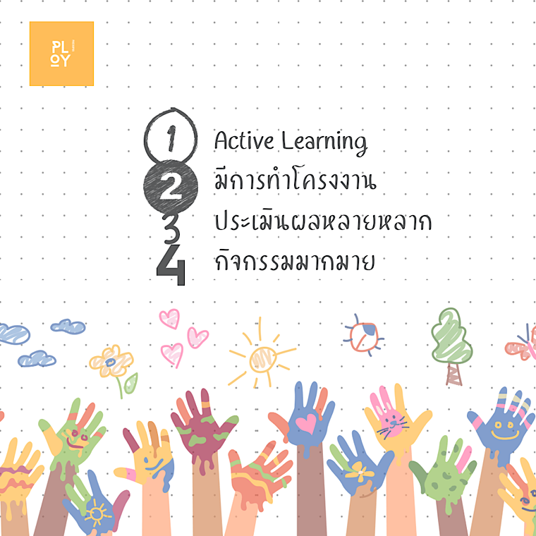 - Active Learning เด็กๆจะได้ลงมือทำงาน ทำกิจกรรม เรียนรู้ อะไรๆได้ด้วยตัวเอง